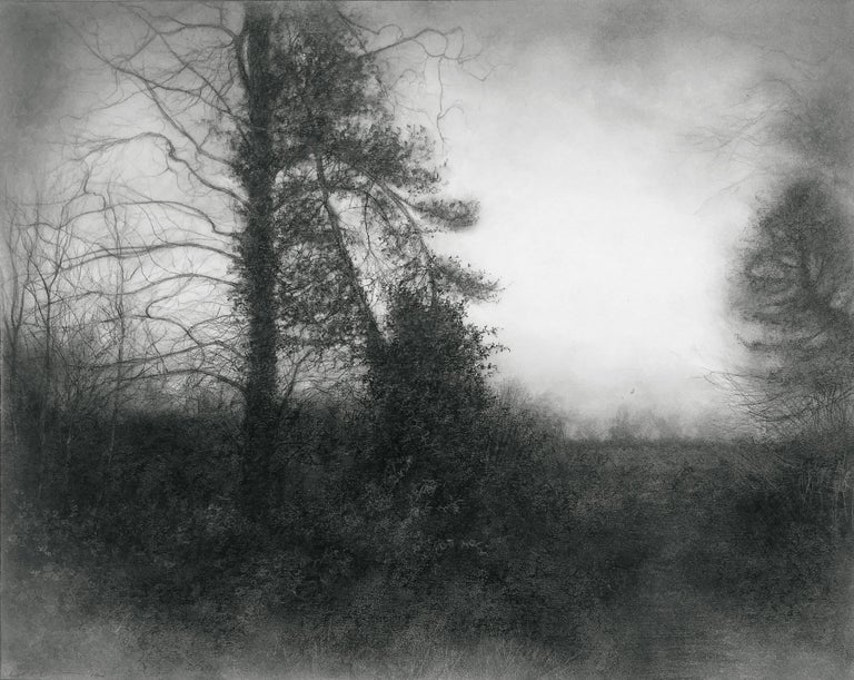 Sue Bryan A Way Through Black And White Charcoal Drawing Of Misty Landscape W Spruce Tree At 1stdibs Spruce Tree Drawing How To Draw Mist Spruce Trees Drawing